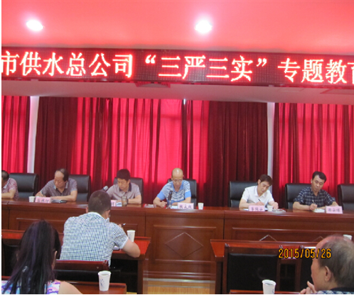 4月26日下午,市供水總公司在六樓會(huì)議室召開(kāi)三嚴(yán)三實(shí)專題教育活動(dòng)動(dòng)員會(huì),黨委書記、總經(jīng)理陳永根聯(lián)系公司實(shí)際為全體黨員上黨課。公司全體賞、中層以上干部100余人參加,會(huì)議由黨委副書記、紀(jì)委書記、工會(huì)主席徐黎明主持。