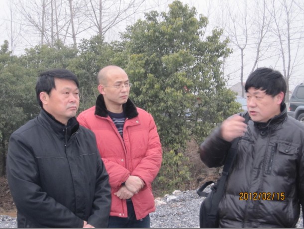 荊門市供水總公司總經(jīng)理陳衛(wèi)國(左一)、黨委書記陳永根(左二)到華能荊門熱電聯(lián)產(chǎn)工程工地,聽取該項(xiàng)目負(fù)責(zé)人介紹工程建設(shè)前期用水需求。
