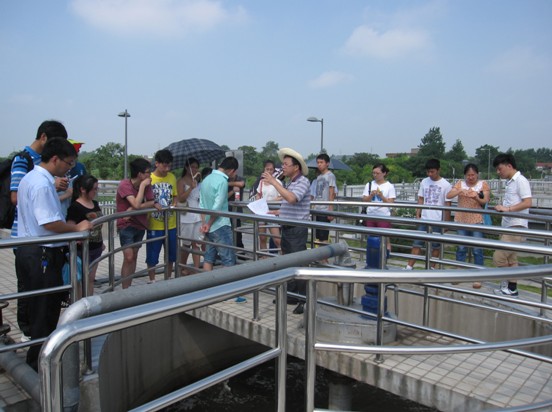 在荊門市化工研究所所長、化工資源信息研發(fā)中心副主任及環(huán)境工程教研室主任劉善培博士的帶領(lǐng)下,先后參觀了中心控制室、從進水到出水的整個工藝流程。通過該廠技術(shù)總監(jiān)魯儒軍現(xiàn)場專業(yè)、細致的講解,大家對污水處理工藝有了初步的認知。當(dāng)看到污水經(jīng)過一系列復(fù)雜的工藝,變成汩汩清水時,同學(xué)們對精湛的污水處理工藝驚嘆不已。