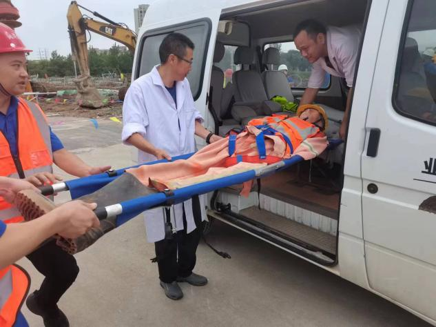 本次演練結(jié)合現(xiàn)場(chǎng)實(shí)際情況,生動(dòng)模擬了施工過(guò)程中“因突發(fā)雙排腳手架倒塌導(dǎo)致作業(yè)人員墜落并被擠壓”的緊急情況。所有參與人員嚴(yán)格按照崗位職責(zé),高效完成了從發(fā)現(xiàn)上報(bào)、應(yīng)急響應(yīng)、現(xiàn)場(chǎng)指揮、警戒設(shè)立、搶險(xiǎn)救援到醫(yī)療救護(hù)等一系列應(yīng)急處置流程。各方協(xié)同聯(lián)動(dòng),僅用15分鐘即完成演練任務(wù),達(dá)到預(yù)期效果。