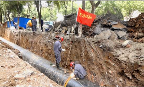 四條道路供水管線遷改工程時間緊、任務(wù)重,且施工難度大。由于道路施工工期緊張,施工單位都在全力趕工期,因此5月后進(jìn)入到管線遷改工作的白熱化階段。維修處全體干部職工充滿信心,全力以赴,不辱使命,挑戰(zhàn)自我。全體施工人員克服重重困難,采取“白+黑”、“5+2”連軸轉(zhuǎn)不停歇的工作模式,加班加點(diǎn),在保證安全質(zhì)量的前提下,加快施工進(jìn)度,確保四條道路管道遷移改造工作快速推進(jìn),圓滿完成總公司和工程建設(shè)指揮部下達(dá)的各項(xiàng)工作任務(wù)。