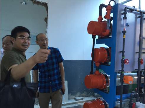 一水廠為城市備用水廠,始建于1969年,以前凈化工藝采取傳統(tǒng)的加氯(氯氣瓶儲存供應(yīng))方式,考慮到一水廠地處省重點中學(xué)龍泉中學(xué)旁,人口密集,存在?;沸孤┌踩[患,公司通過考察,慎重決策,在內(nèi)地(目前僅在沿海地區(qū)發(fā)達(dá)城市應(yīng)用)首家引進次氯酸鈉加氯(電解反應(yīng),邊制造邊供應(yīng))方式,投資50萬進行工藝改造,徹底解除這一公共安全隱患。在改造現(xiàn)場,公司黨委書記、總經(jīng)理陳永根要求,一水廠次氯酸鈉加氯改造項目要加快建設(shè),確保6月底前投運,同時要做好職工培訓(xùn)工作,確保人人能按新工藝規(guī)程進行熟練操作,確保公共安全。