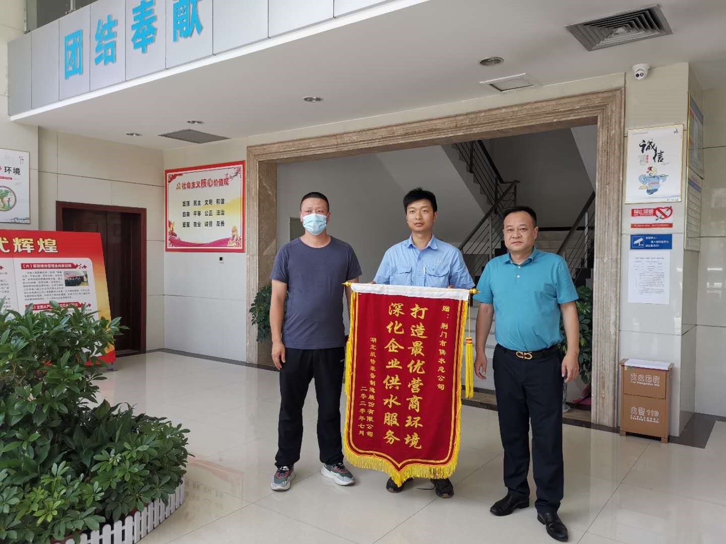 “感謝市供水總公司解決廠區(qū)管道漏水的大難題,你們辛苦了!”8月3日下午,湖北航特裝備制造股份有限公司(以下簡稱航特公司)相關(guān)負(fù)責(zé)人將一面印有“打造最優(yōu)營商環(huán)境 深化企業(yè)供水服務(wù)”的鮮艷錦旗送到市供水總公司。